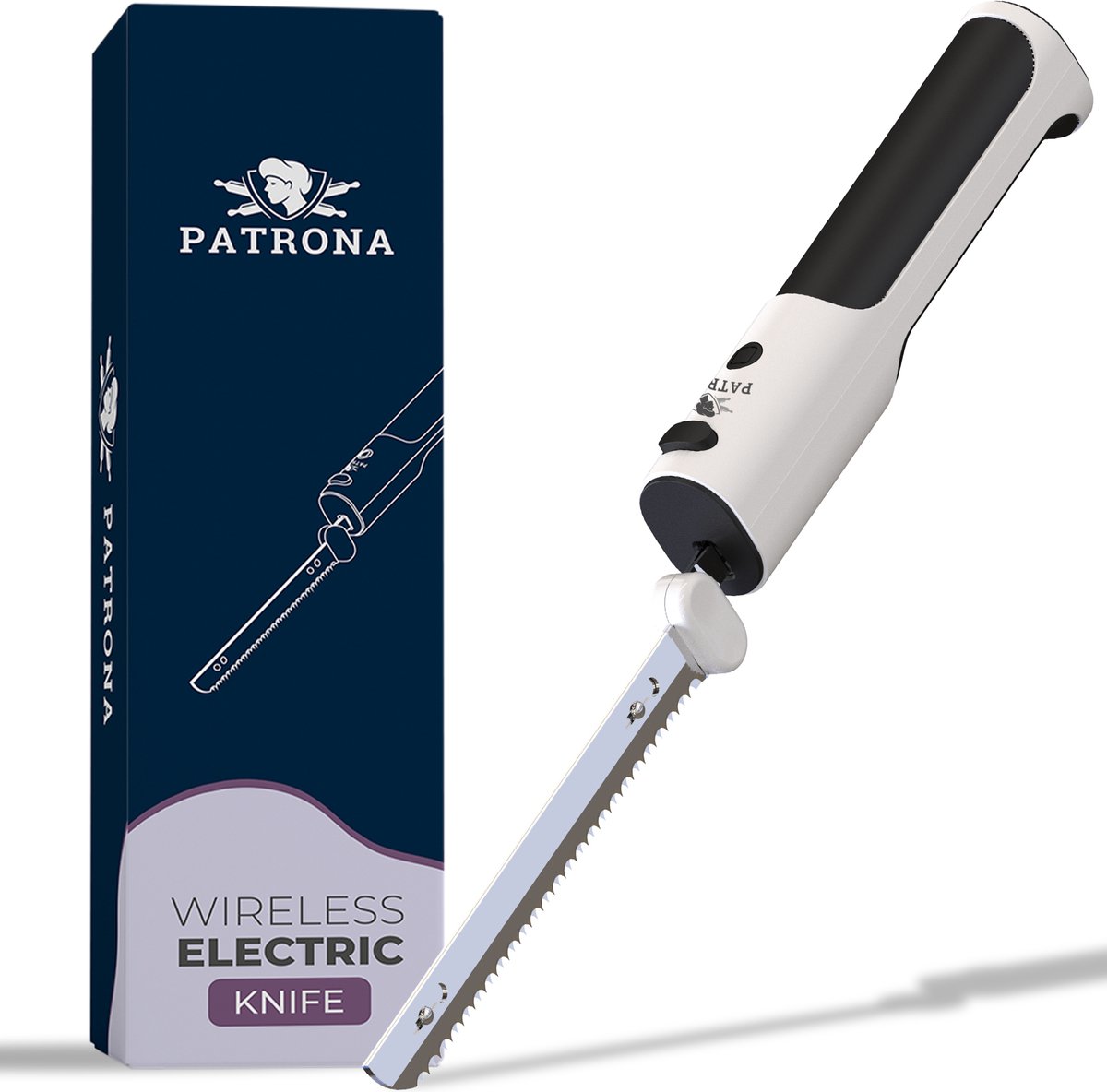 Kies voor de Patrona® Draadloos Elektrisch Mes Broodsnijmachine en snij moeiteloos bevroren of vers brood! Deze broodsnijder is speciaal voorzien van een krachtige accu en is volledig draadloos. Geniet van een optimale gebruikservaring dankzij het ergonomische handvat en de compacte vormgeving. Met de dubbele snijbladen met de gekartelde afwerking, kunt u moeiteloos brood, cake, groenten, fruit en vlees snijden. De hoogwaardige roestvrijstaal verzekert u van jarenlang plezier. U kunt de mes tot wel 50 minuten aaneengesloten gebruiken en laad hem in slechts 1 uur volledig op. Geniet van een prettige snijervaring met de Patrona® Draadloos Elektrisch Mes Broodsnijmachine!