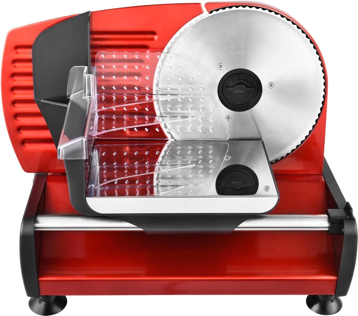 De Domo MS171/N snijmachine is een krachtige en betrouwbare keukenhulp. Je kunt je favoriete producten snijden met het RVS kartelmes, met een diameter van 17 cm. Het mes is voorzien van een schaarmechanisme dat je in staat stelt om de dikte van de plakjes te verstellen. Je kunt daardoor perfecte plakjes krijgen die even dun of dik zijn. De plakjes komen op een plastic voedingsschaal, waardoor deze gemakkelijk te verplaatsen zijn. De Domo MS171/N Snijmachine heeft een handige inklapbare constructie, waardoor deze eenvoudig op te bergen is. Bovendien is deze snijmachine ook voorzien van een veiligheidsschakelaar, waardoor je zonder zorgen kunt werken. De snijmachine is gemaakt van sterk materiaal en is bestand tegen dagelijks gebruik. Met deze Domo MS171/N snijmachine in je keuken ben je altijd verzekerd van perfecte plakjes.